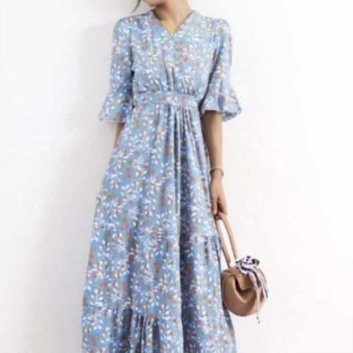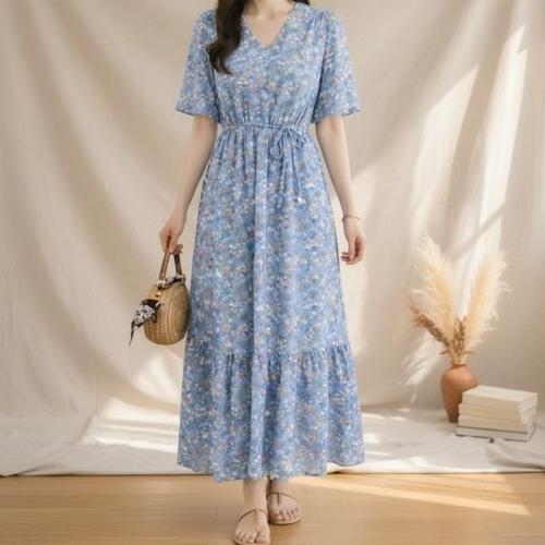 [다잇템]여성 롱 플라워패턴 피크닉 여신핏 원피스