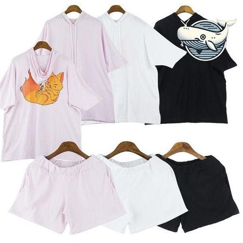 프린팅 후드 세트 여성여름츄리닝 상하의 여우 (3z2VD)