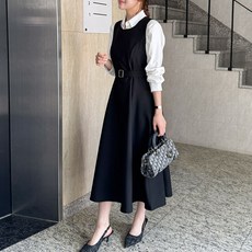 데일리앤 베를린 뷔스티에 플레어 벨트 세트 하객룩 원피스 지퍼 레이어드 봄 가을 사계절