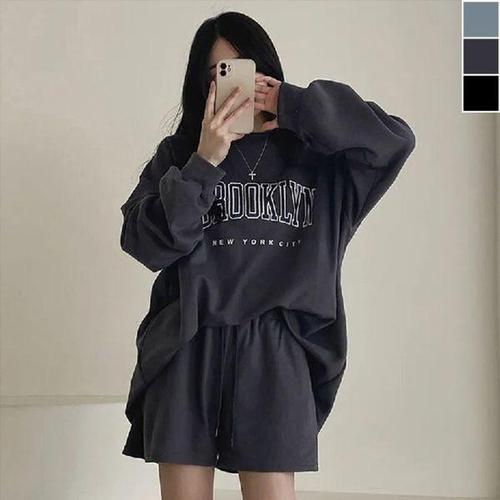 [에이치플러스몰]여성 반바지 맨투맨 트렌드 셋업 1P 데일리 오버핏 세