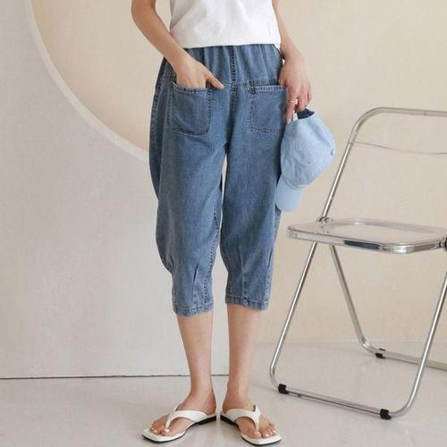 쁘띠꼬모 여성 세미배기 9부 청바지 빅사이즈 데님팬츠