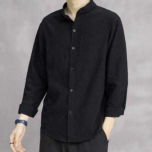 [에이치플러스몰]3컬러 유니크 세미 루즈 차이나 카라넥 린넨 긴팔셔츠