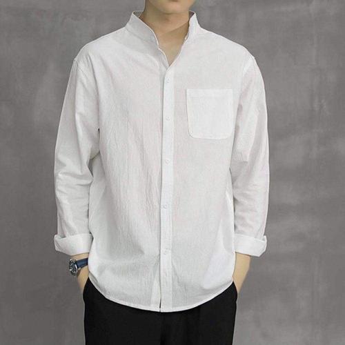 (25년 신상) 85kg까지 빅사이즈 여성 차이나 순면 빈티지 단추 셔츠 봄 가을 편한 사계절 가벼운 심플 캐주얼 단아한 고급 모던 데일리 베이직 부드러운 시크 오피스룩 남방