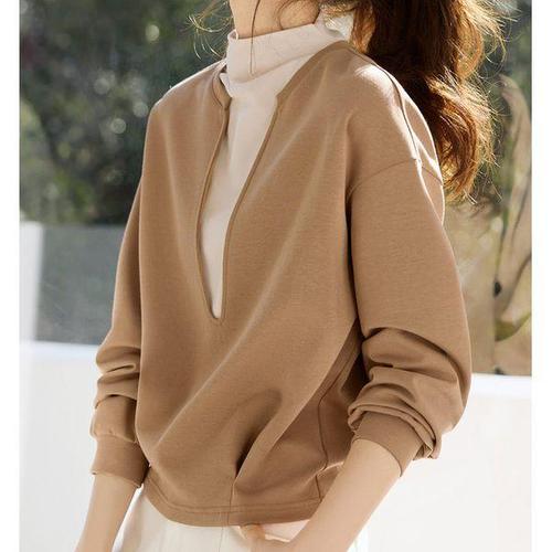 |KST9A02|여성 가을 오버사이즈 긴팔 지퍼 레이어드 빈티지 패치 맨투맨