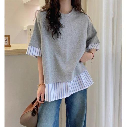 [패션시그널]유니크레이어드 반팔 맨투맨 D5F22C