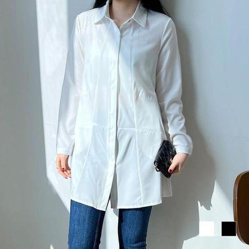 [셀러허브_여성트랜드패션]롱셔츠 오버핏 X 블라우스 무지 데일리 베이직
