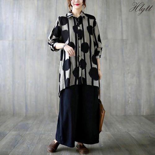 [헬리꽁땡](55~88)2종세트 시크도트셔츠 상하세트 롱셔츠 여성봄블라우스 롱티 박스티 여성긴팔셔츠