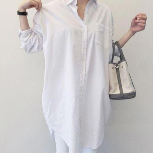 [셀러허브_여성트랜드패션]여자 여성 블라우스 롱셔츠 블라우스 여성남방 단추 셔츠 여성셔츠 베이직 여..