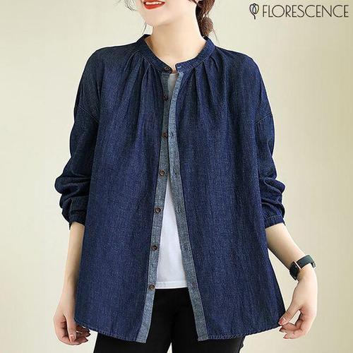 [헬리꽁땡]라운드셔링데님셔츠 블라우스 롱셔츠 여성봄블라우스 롱티 박스티 여성긴팔셔츠