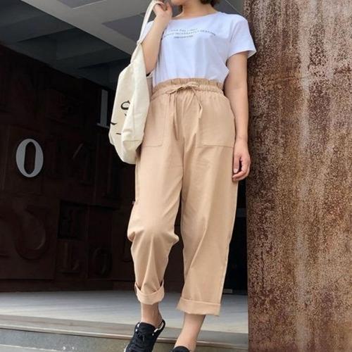 [엄지척]여성 넓은 허리밴딩 심플 주머니팬츠 롤업팬츠 마바지_20137922_667501