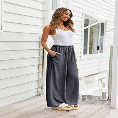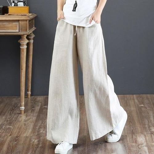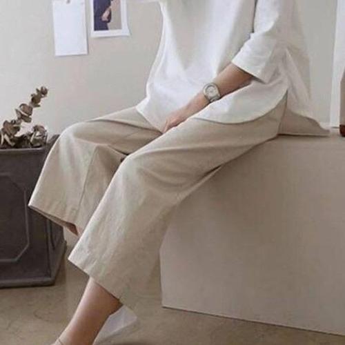 SELEAD 여성 면마 와이드 팬츠 봄 가을 린넨 캐주얼 중년 배기팬츠 베이직 빅사이즈