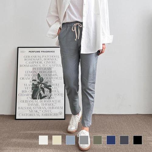 [에이치플러스몰]여름 밴딩 린넨팬츠 마바지 리넨팬츠 여름린넨통바지