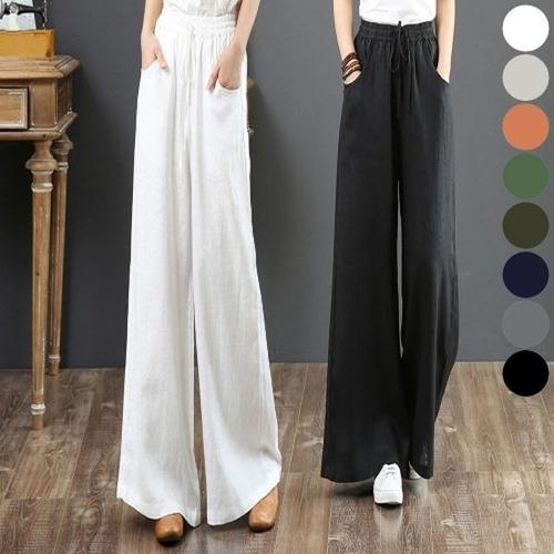 [패피샵] 시원한 마 린넨 체형커버 빅사이즈 와이드 밴딩 바지 팬츠