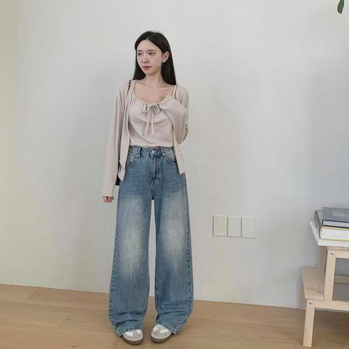 [다잇템]여자 페미닌 민소매티 카디건 스트랩 세트
