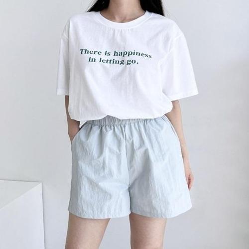 [에이치플러스몰]와이드 캐쥬얼반바지 커플룩 봄 밴딩반바지 츄리닝 면