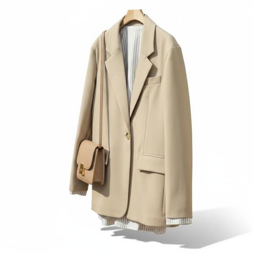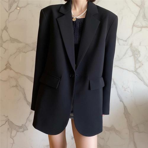 |CCJ6DD8|여성용 오버사이즈 원버튼 폴리 테일러드 블레이저