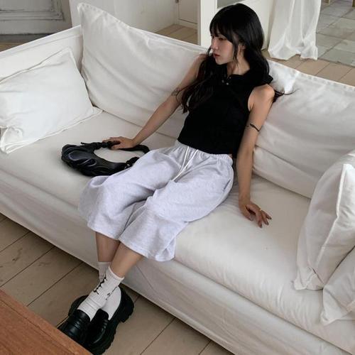동대문스타일 가볍고 시원한 아이스 세미와이드 8부 밴딩 팬츠 여성 여름바지
