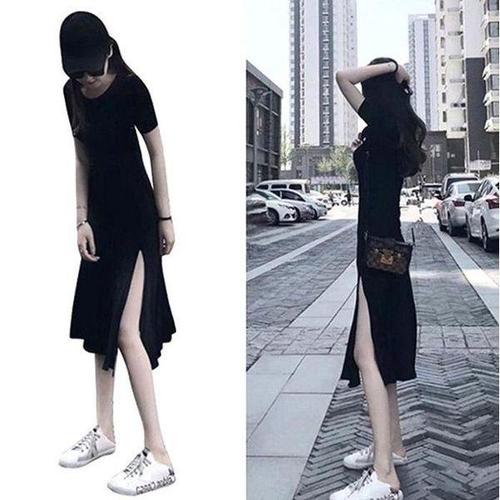 [셀러허브_여성트랜드패션]이너 원피스 A라인 편한 플레어 여름 옆트임 롱 반팔
