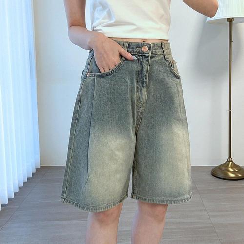 여자 가을 버뮤다데님 박시 와이드 워싱 면 청반바지