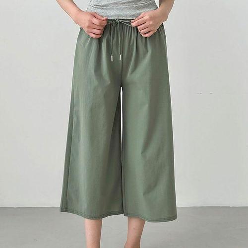 [에이치플러스몰]여성 와이드핏 스트링 8부팬츠 5컬러 허리밴딩 통바지