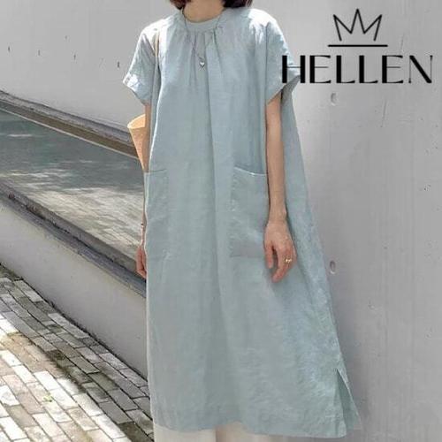 [헬렌]헬렌 루즈핏 린넨 레이어드 포켓 원피스 소다반린넨OP