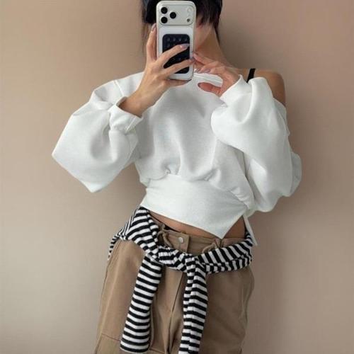 [신상오픈런]|KST9C4A|여성 오프숄더 크롭 트임 벌룬 루즈핏 맨투맨_23716484_597559
