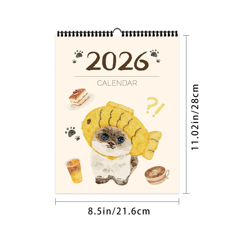TEMU 1개, 2026년 달력, 일본 수제 고양이, HD 사진, 12가지 다양한 고급 패턴, 2026년 벽 달력, 12개월 월별 계획, 생일, 크리스마스, 새해 선물로 완벽한 선택, 미국 일반 버전 포함|달력|달력