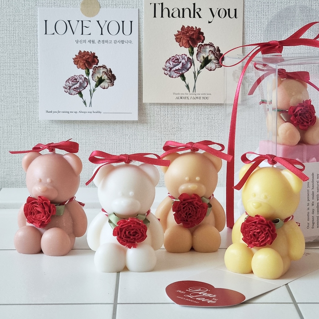 가정의달 카네이션 작은 곰돌이 캔들 + 선물포장 어버이날 스승의날 부모님 선생님 선물