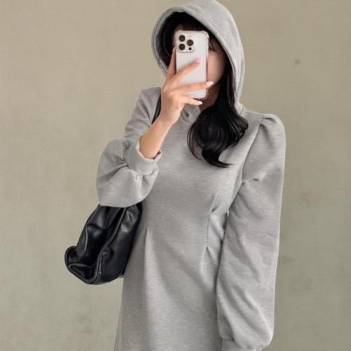 [옷자락] 여성 캐주얼 후드 원피스 슬림핏 A라인 롱드레스