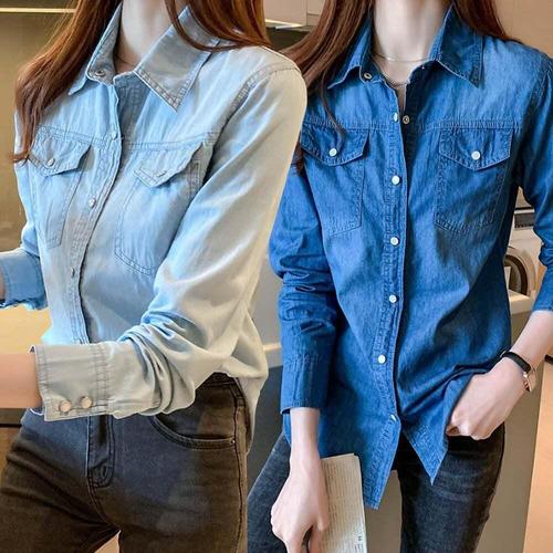 [셀럽하우스]여성 GEKA0137 연청 진청 데님 긴팔 셔츠 여자 청남방