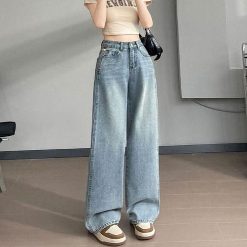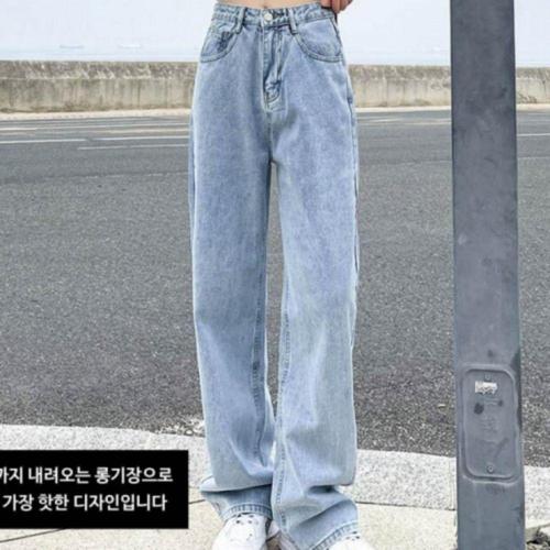 여자 와이드 핏 청바지 연청 하이웨스트 데님팬츠 여름 슬림 워싱 빈티지 일자 슬리퍼 BE2