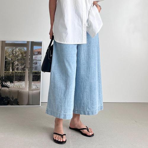 [옷자락] [시즌오프]9부데님 와이드핏 뒷밴딩 연청 여름 통 청바지_5