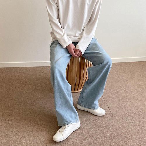 [리빌모아]남자 베이직 노멀 와이드 연청 데님팬츠 UJ-JEA-8013