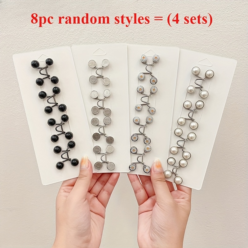 TEMU 8개 세트, 스타일리시한 무봉제 허리조절기 - 여성용 메탈 버클 디자인, 청바지 허리 조정 가능, 탈부착 쉬운 설치, 완벽한 선물