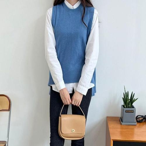 [라일리여성의류] Rly 여자 단정해보이는 라운드넥 옆트임 조끼