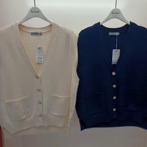 유니크한 시그니처 옆트임 스타일 레이디 브이컷니트웨어 베스트