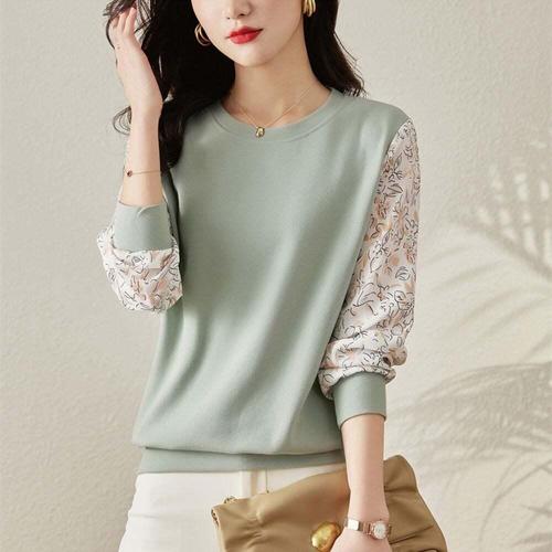 메인워크 여성 빅사이즈 반폴라 레이스 블라우스 티 봄 가을 프리미엄 이너 긴팔 스웨터 간절기 고급 패션 기질 얇은 상의