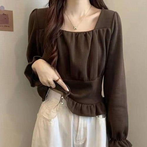 여자상의 예쁜 긴팔 블라우스 여자 셔츠 스퀘어넥 데일리 셔링 WFJHSAX