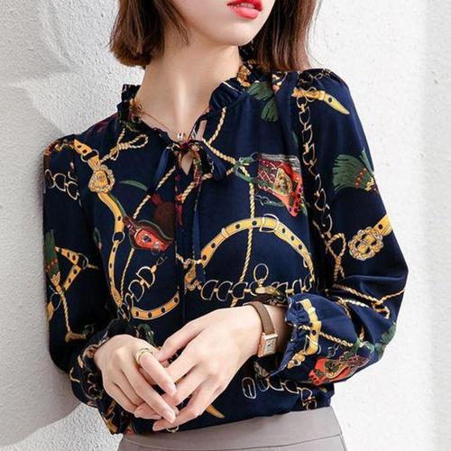 Vezri 여성용 봄 가을 브이넥 시크 예쁜 고급스러운 허리조임 짧은 긴팔 블라우스 SKZ111