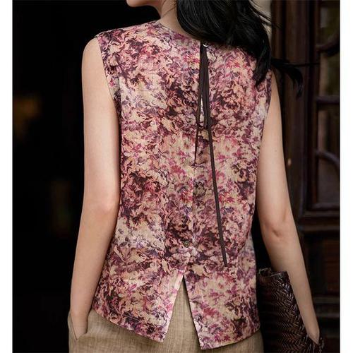 [패션시그널]뒷태가 예쁜 프린팅 민소매 블라우스 EF8B00