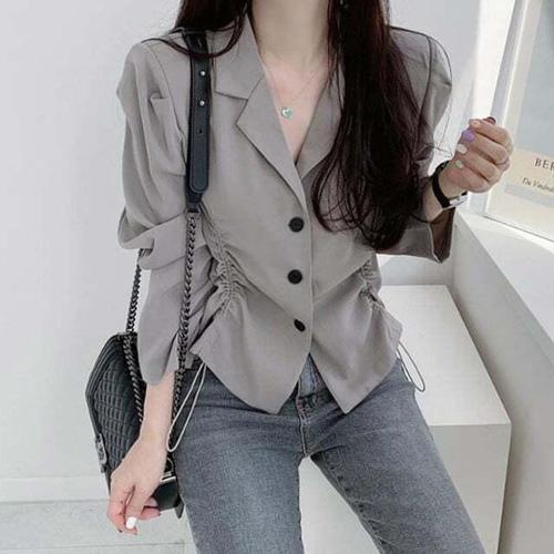 [셀럽하우스]여성스러운 DHBO3927 예쁜 블라우스 자켓 양쪽셔링 차르르한
