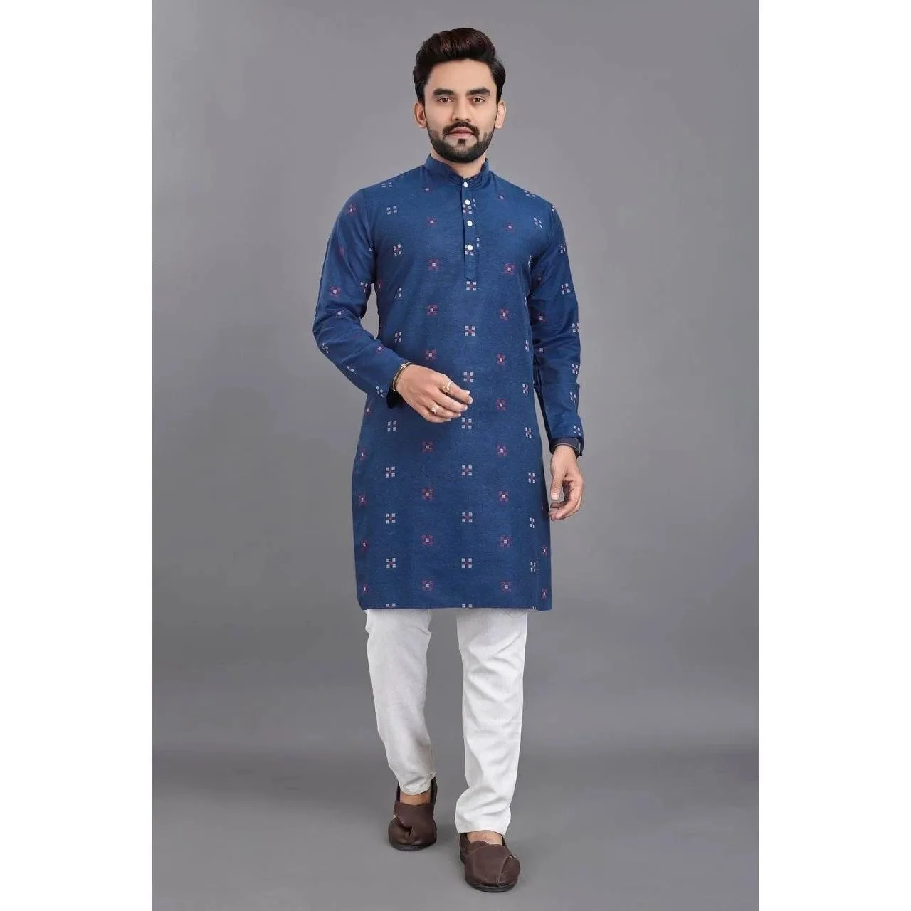 남성 디지털 프린트 쿠르타 셔츠 레귤러 핏 만다린 칼라 롱 웨딩, 하리 라야, 국가 스타일 등 모든 행사에 적합