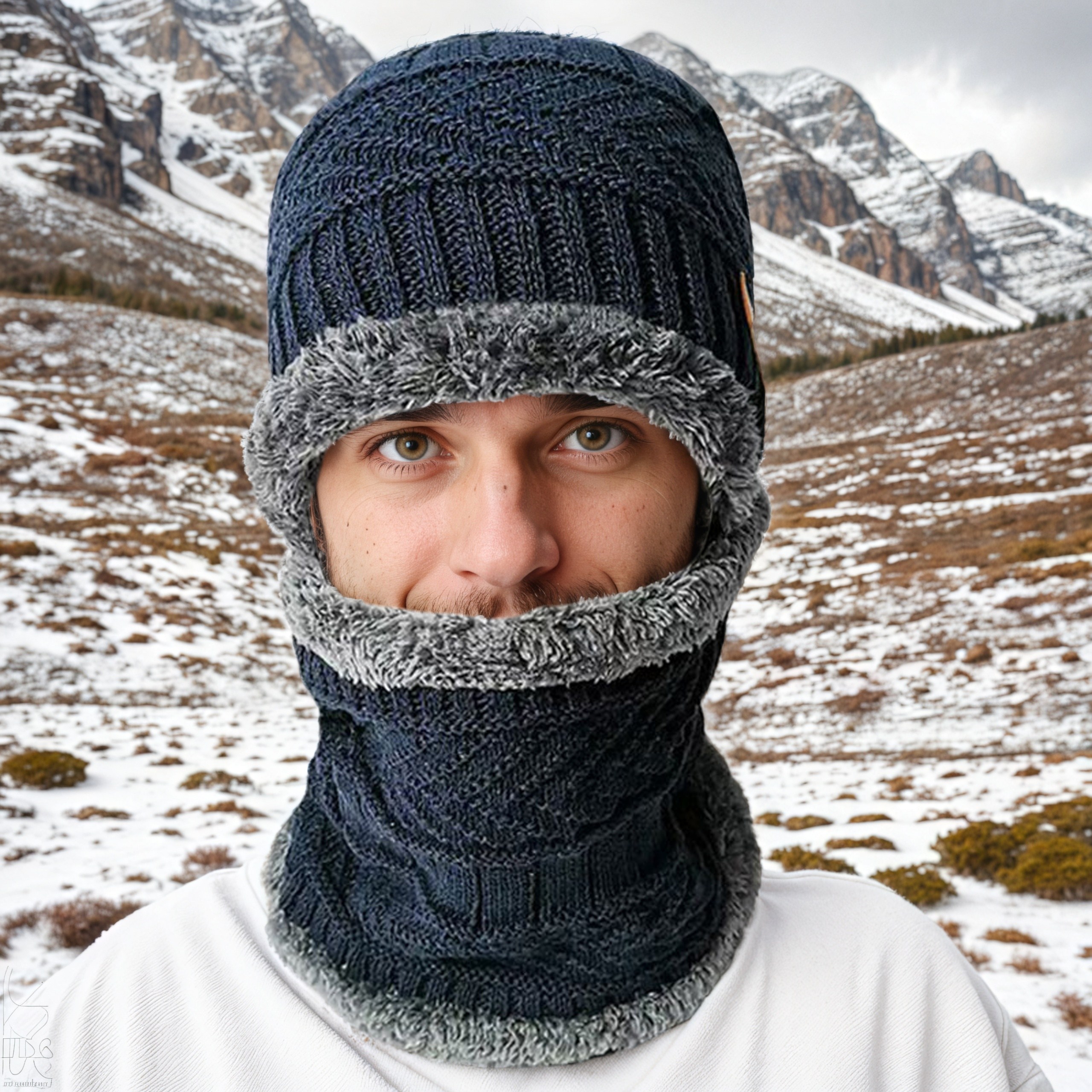 TEMU 2개 남성용 겨울 비니와 스카프 세트 - 스타일리시한 블랙 니트 모자와 플러시 안감, 신축성 있는 폴리에스터 원단, 손세탁 가능 - 추수감사절 및 크리스마스 선물에 완벽, 축제용 헤드웨어|축제용 헤드웨어|신축성 있는 원단