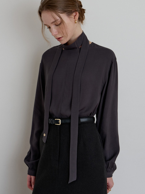 [모멧] 오드타입 스카프 블라우스 차콜