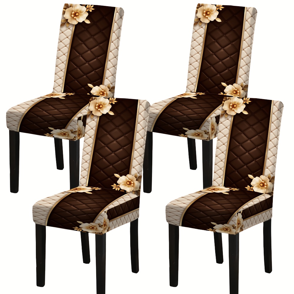 TEMU [] 4/6개 신축성 있는 식탁 의자 커버, 퀼팅 브라운 꽃무늬, 2D 평면