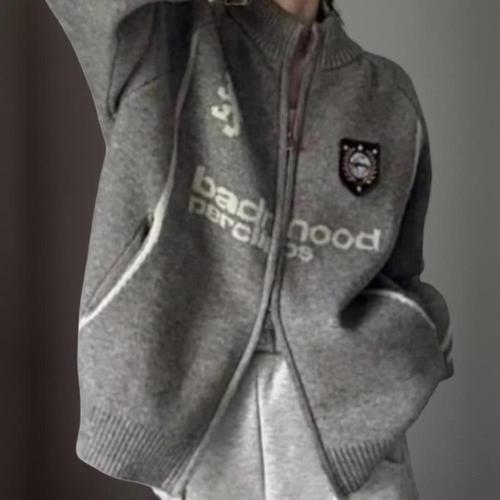 [신상오픈런]여성 배색 소매 오바로크 스타일 집업 가디건