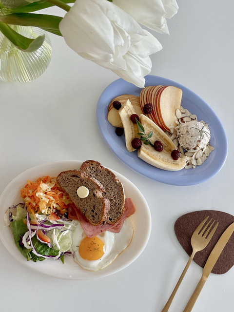 쿠코아 가정용 프렌치 감성 오벌 세라믹 플레이트 브런치용 고온 내열 우아한 디너 접시
