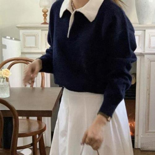 [옷자락]여성 배색카라 오버사이즈 긴팔 니트
