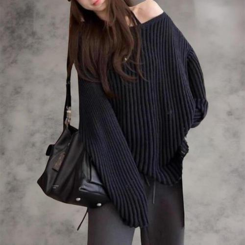 여성용 빅사이즈 오버핏 롱니트 브이넥 루즈핏 신상 데일리룩 긴팔 니트 부드러운 스타일리쉬 여리여리