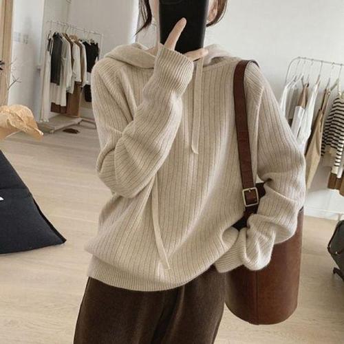 [에이치플러스몰]베스트 니트립 스웨트 루즈핏 레귤러핏 후드탑풀오버